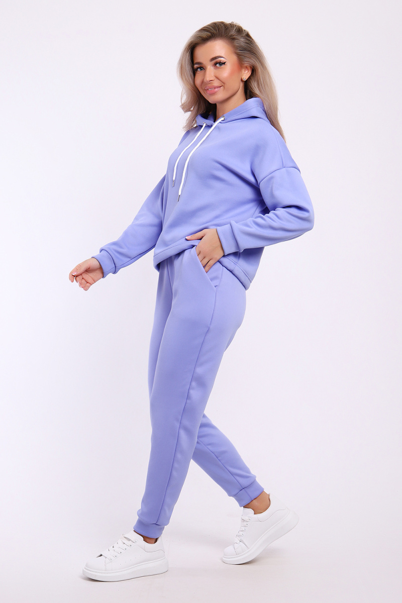 Модный утеплённый костюм выполнен из материала нового поколения футер найк - спорт. Это мягкое и эластичное полотно, утеплённое мелковорсным мехом, цвет меха в тон основного цвета. Ворс направленный 3 мм, мягкий и не блестящий. Полотно эластичное и очень приятное на ощупь с обеих сторон. Благодаря составу не вытягивается, не образует катышки, не сыпется и не требует особого ухода. Костюм такого плана - это модная и стильная вещь, идеально подходящая для активного образа жизни, отдыха и для повседневной носки. Модель выполнена из специально разработанной для спортивных занятий ткани, которая отводит влагу, позволяет коже дышать и настолько эластична, что тянется в 4 - х направлениях. Поэтому костюм идеален для зимних видов спорта, например, катания на коньках, сноуборде или лыжах в холодное время, а также для скандинавской ходьбы. Костюм состоит из толстовки и брюк. Толстовка с капюшоном и шнурком. Линия плеча спущена, длинный рукав. По низу толстовки имеется резинка с фиксатором, с помощью которой Вы можете