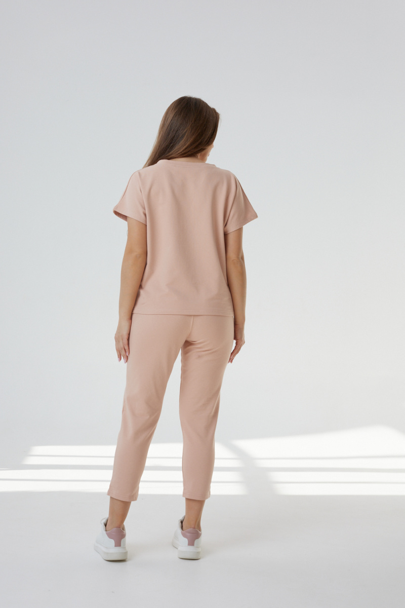 Представляем Вашему вниманию стильный и удобный костюм, изготовленный из качественного материала. Костюм состоит из укороченных брюк и футболки. Наряд обладает исключительной нежностью и мягкостью, которые не проходят через долгое время и позволят Вам наслаждаться комфортом. Очаровательная расцветка этого костюма подарит Вам хорошее настроение и положительные эмоции.